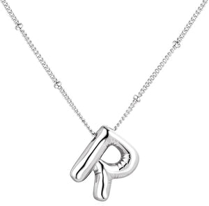 Elevate your everyday look with the Balloon Initial Pendant Necklace with silver finish, a playful twist on classic Initial Jewelry that feels both fun and refined. The smooth, golden bubble pendant catches the light with every move, inspiring a boost of confidence and effortless charm. Designed as a standout Initial Necklace, it pairs beautifully with your favorite Gold Initial Necklace or layered styles. Lightweight yet luxurious, it’s a small indulgence you’ll reach for again and again.