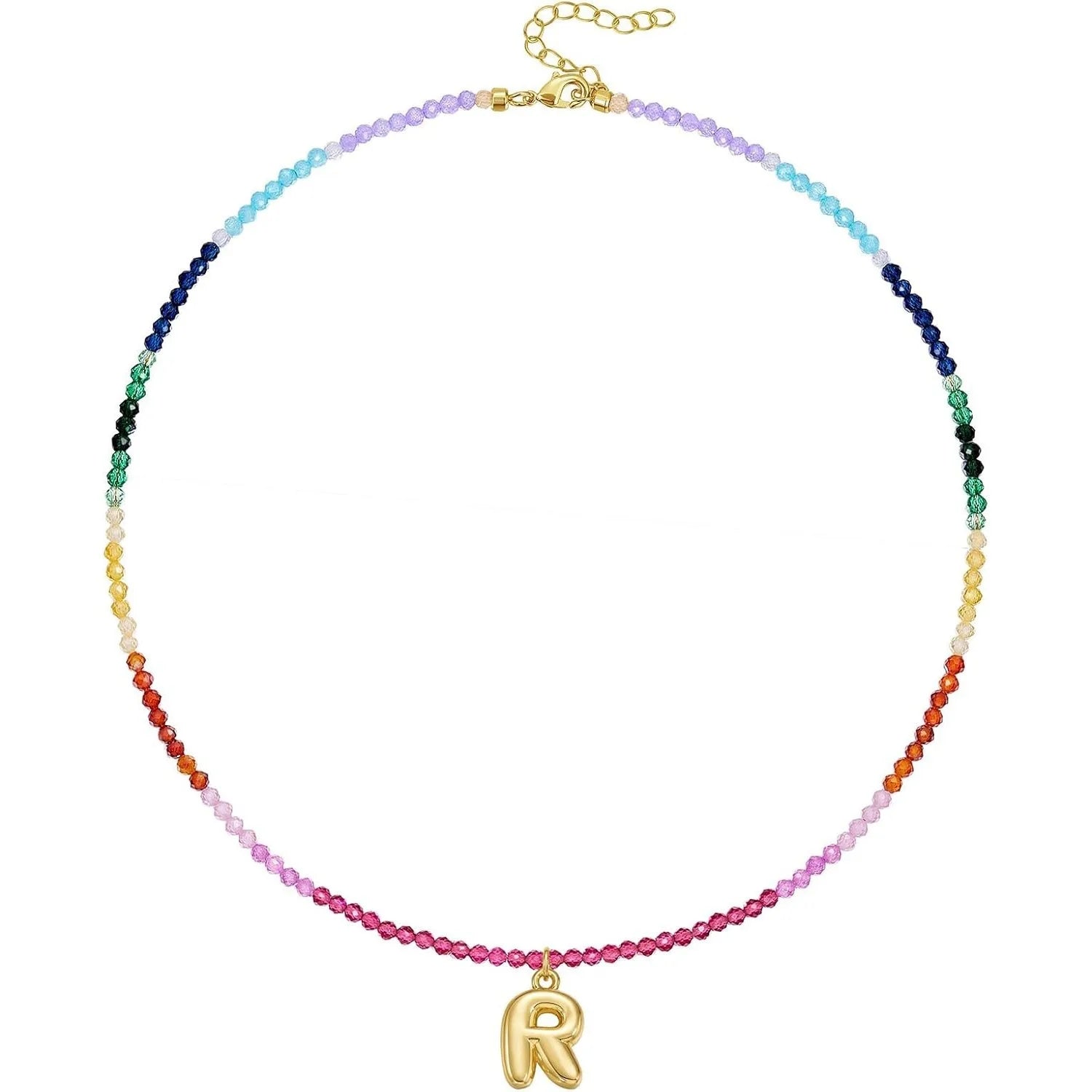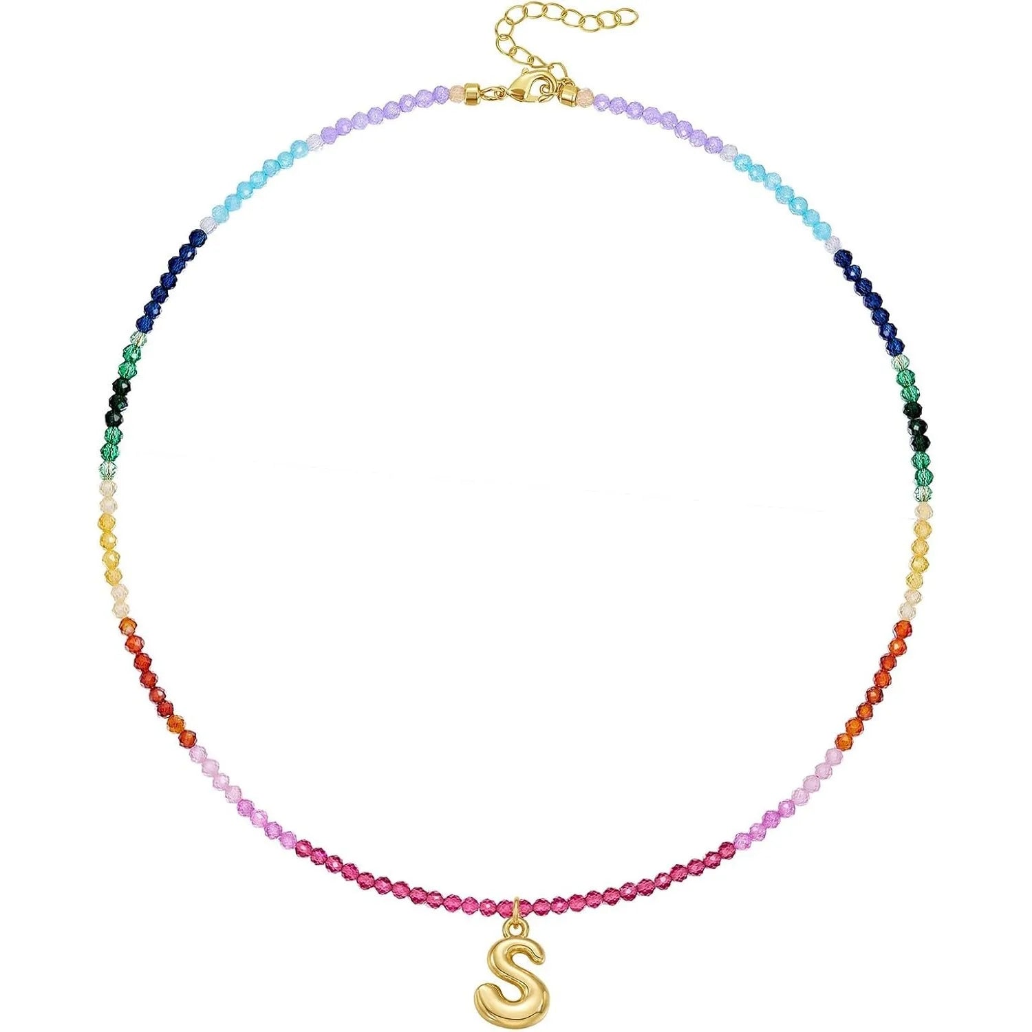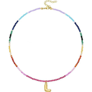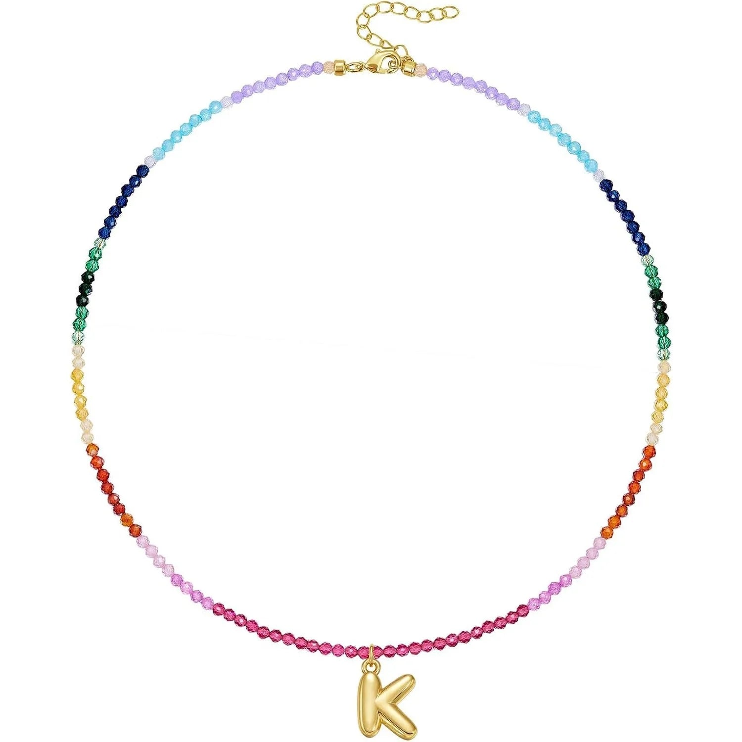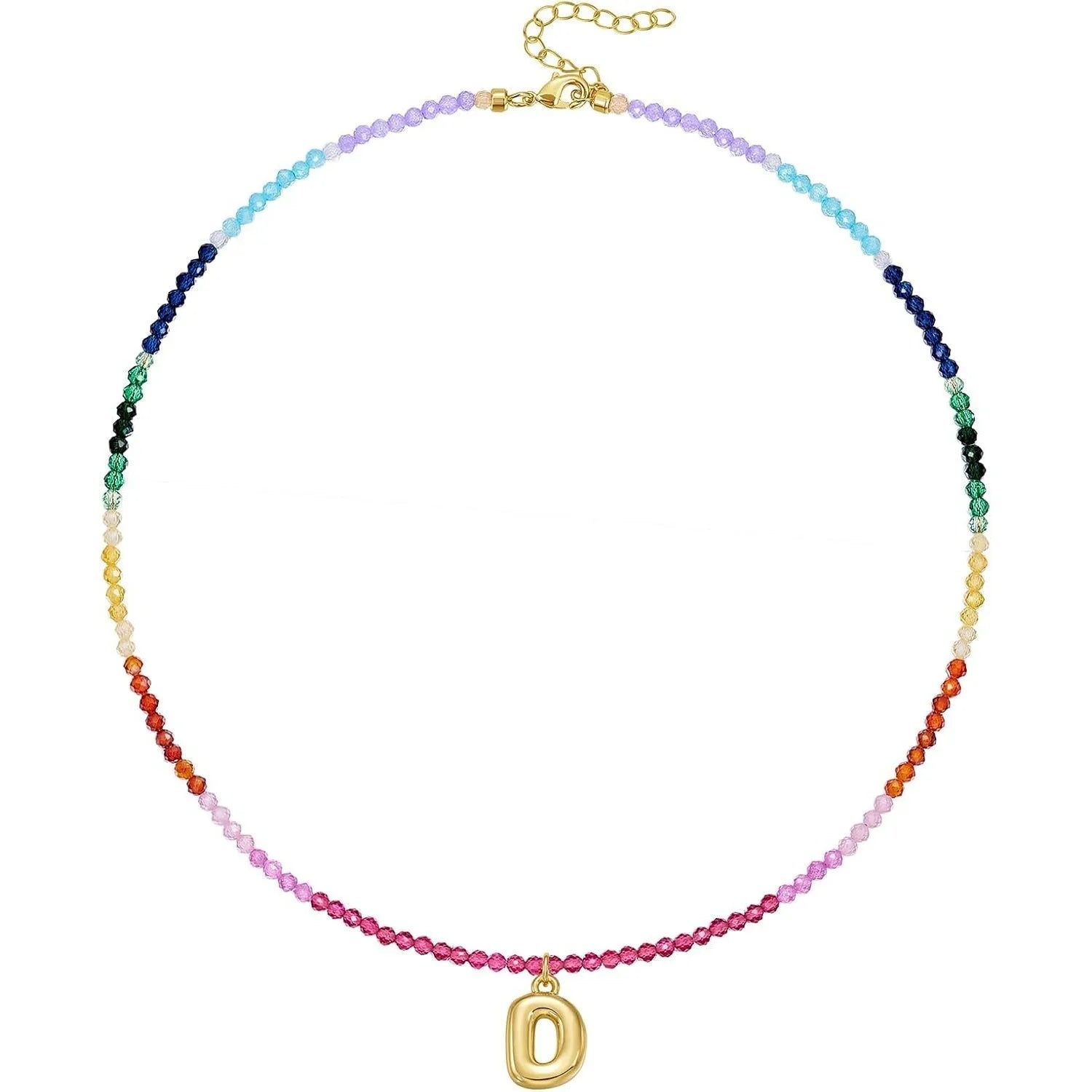 Beaded Bubble Initial Necklace Rainbow Bohemian