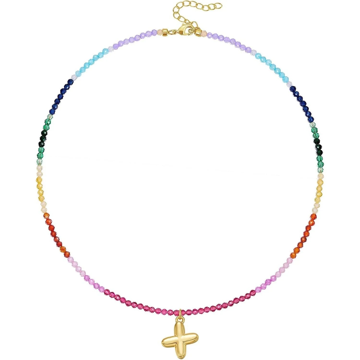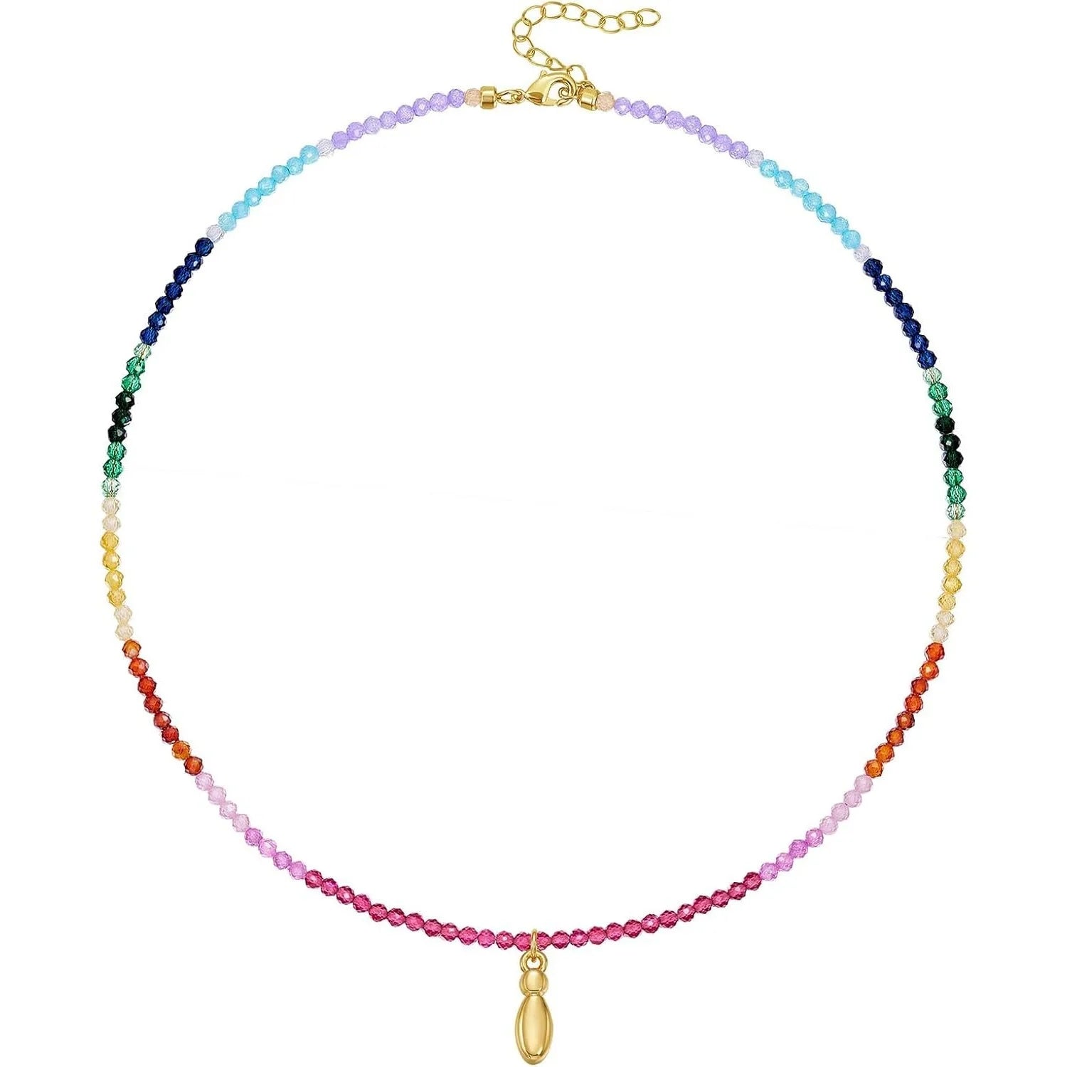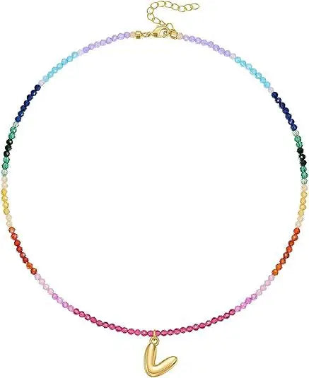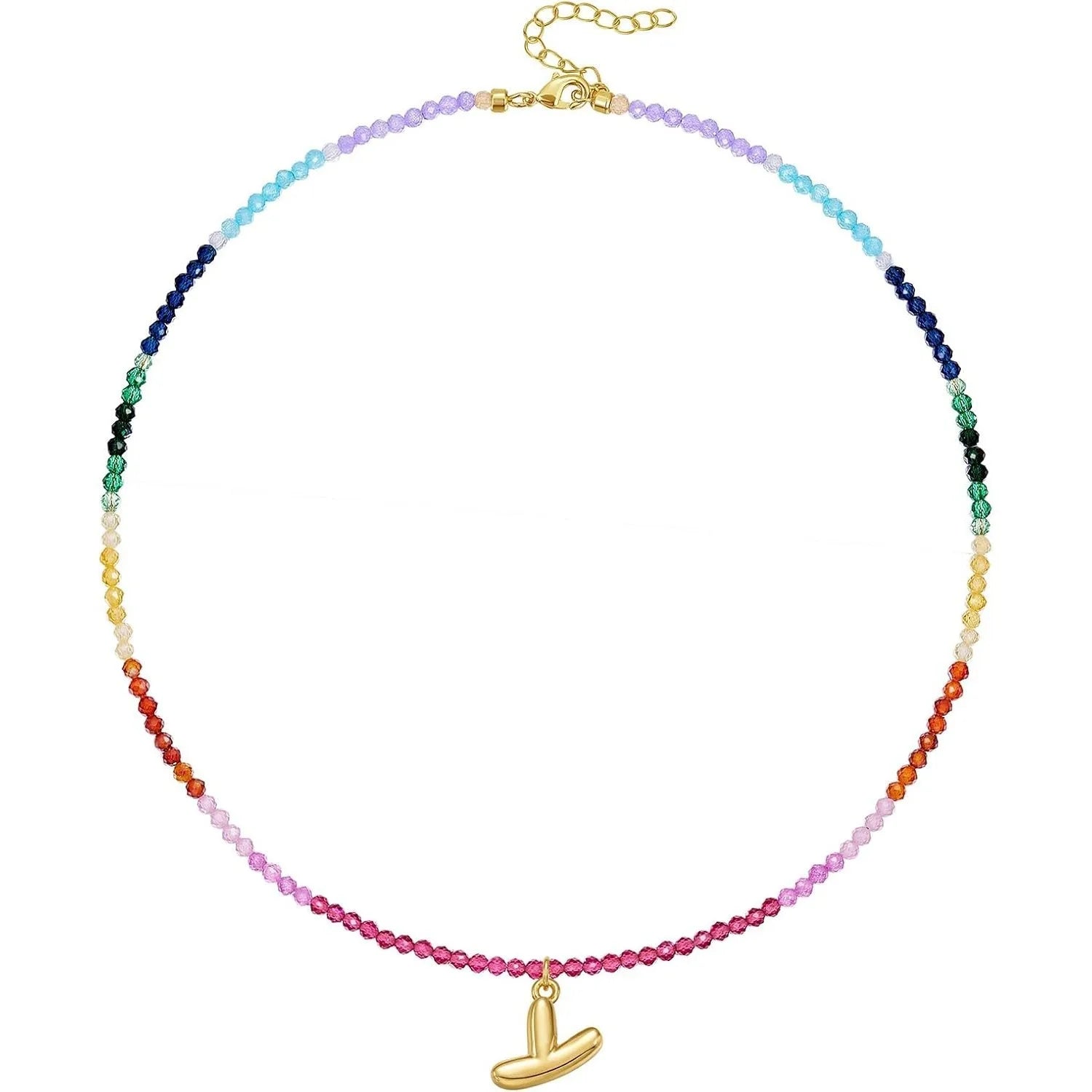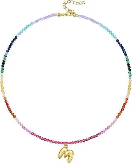 Beaded Bubble Initial Necklace Rainbow Bohemian