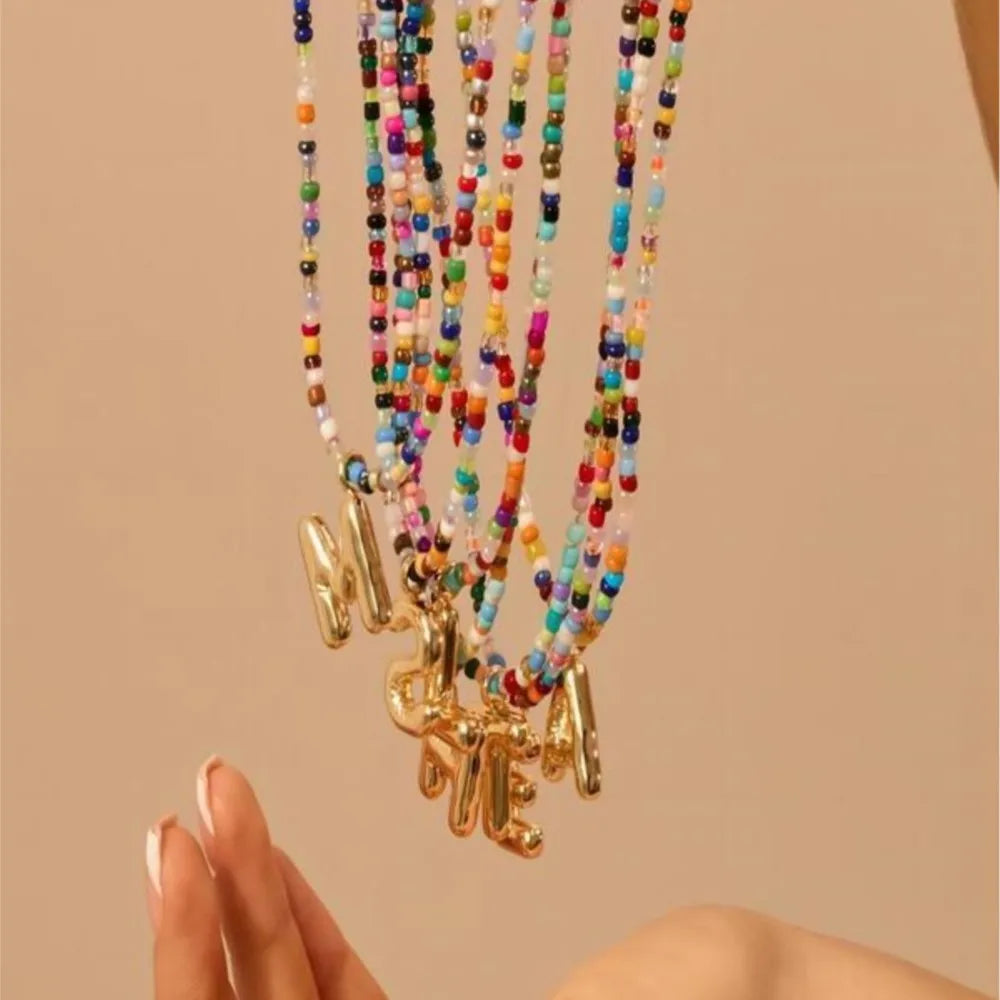 Beaded Initial Necklace Bohemian Choker