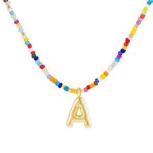 Bohemian Bubble Balloon Initial Necklace Beaded