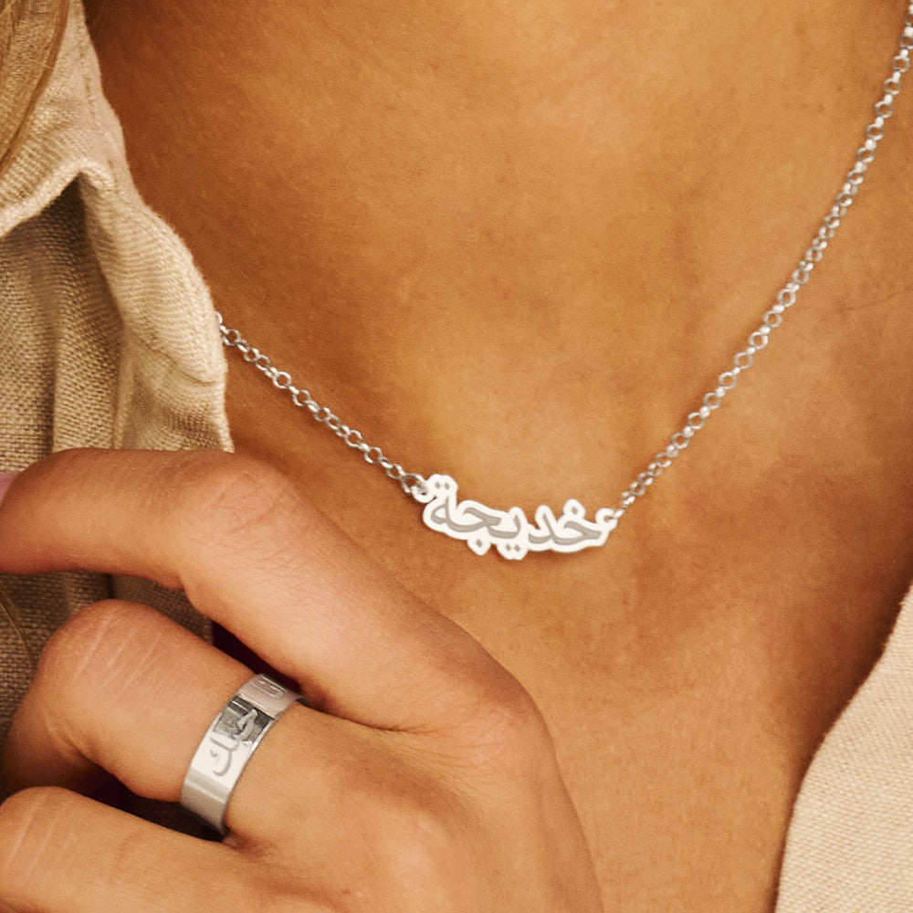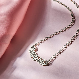 Discover an unique version of the classic Arabic Name Chain with bold font. Available in two different colours, silver and gold. This necklace is crafted from durable stainless steel and 18K gold plating, ensuring both beauty and longevity. Choose from four different lengths—35, 40, 45, and 50 cm—to find the perfect fit for your style.