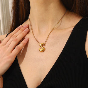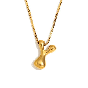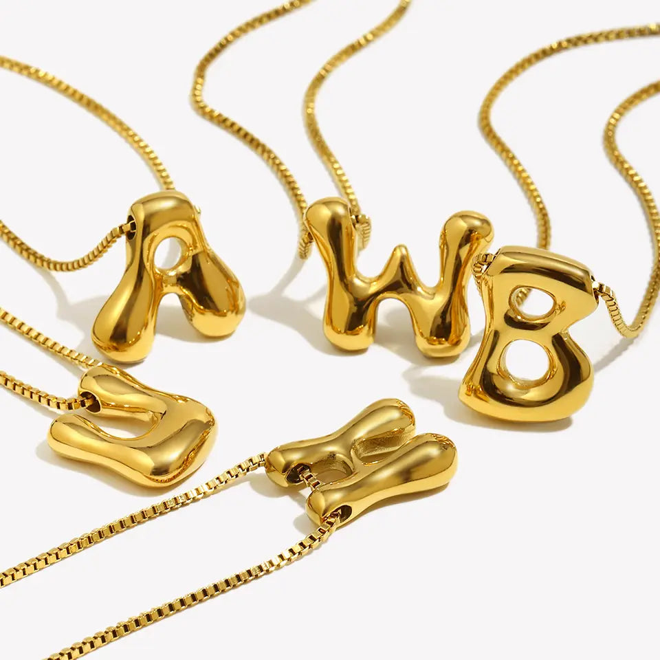 A fun and personalized accessory, the Bold Bubble Initial Pendant Necklace in Gold adds a playful touch to any look. Featuring a creative A-Z balloon bubble letter pendant, this necklace is the perfect way to showcase your initials in a unique and stylish way. The pendant is attached to a sleek box chain, making it a standout piece for any occasion.