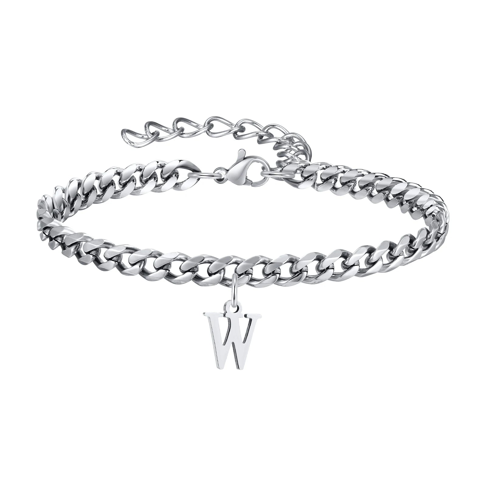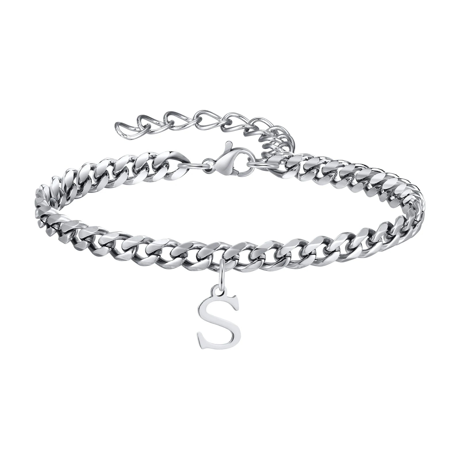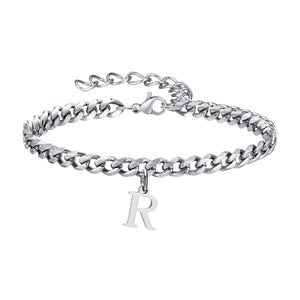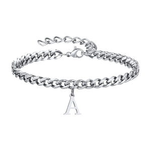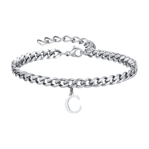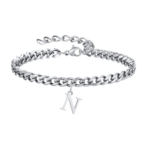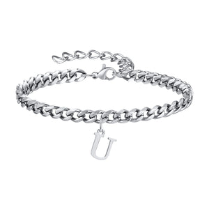 Feel the sleek weight of the Classic Initial Bracelet Cuban Link Silver as it rests comfortably on your wrist, the cuban links catching the light with every move. This Silver Bracelet combines strong Cuban link styling with a personal initial charm for a look that’s uniquely yours. Crafted from durable 316L stainless steel, it offers everyday luxury you can wear from morning coffee to evening plans. The adjustable bracelet length ensures a perfect fit on every wrist.