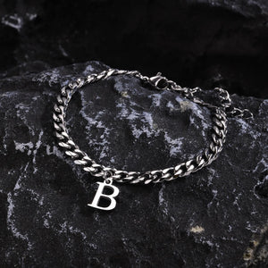 Classic Initial Bracelet Cuban Link Silver