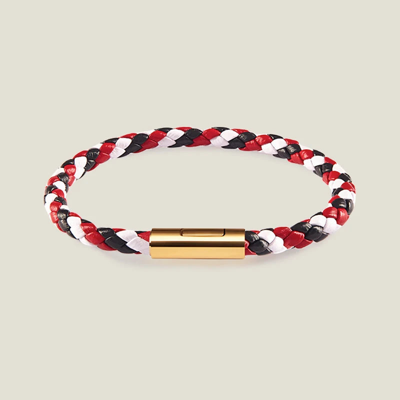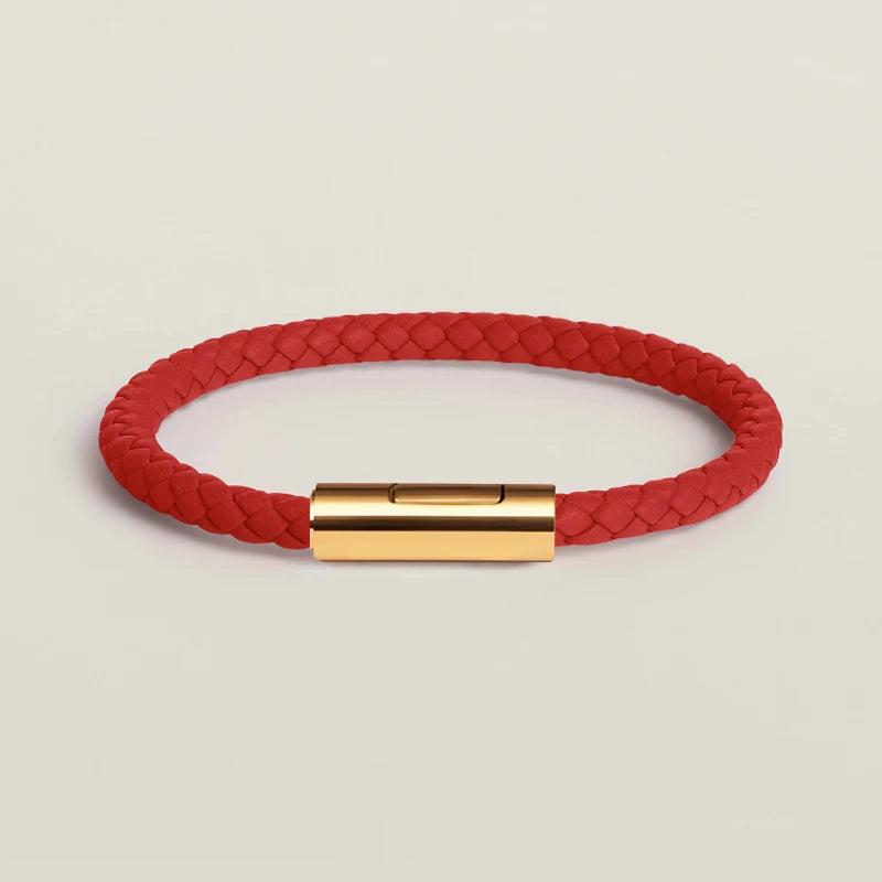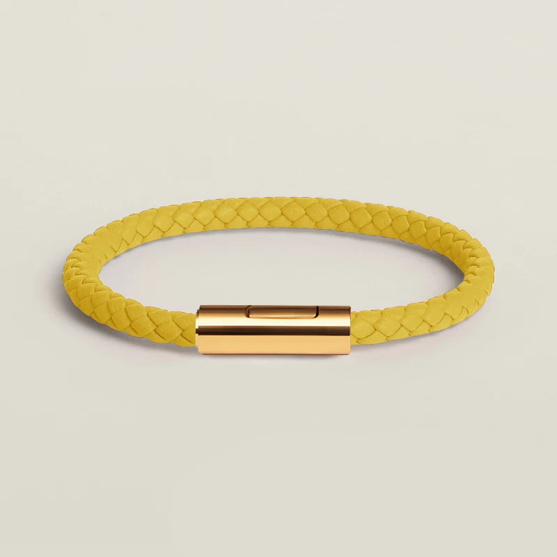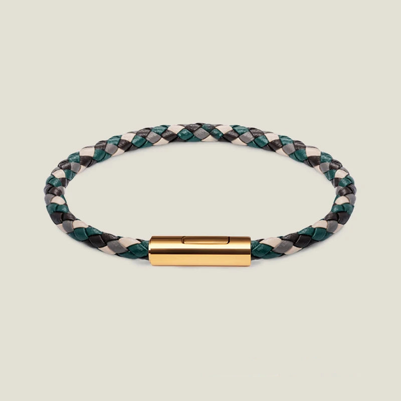 Classic Leather Hand-Woven Bracelet Gold