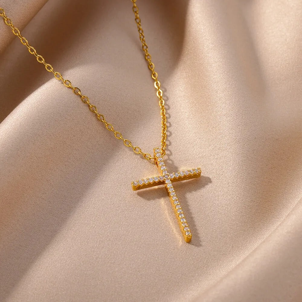 The Classic Sparkling Cross Necklace Gold is a timeless piece that adds a touch of light and meaning to your look. With its sleek gold finish and shimmering cubic zirconia stones, it’s the perfect blend of elegance and everyday wearability. Whether worn as a symbol of faith or simply as a stunning style accent, this gold cross pendant is a piece you’ll treasure daily.
