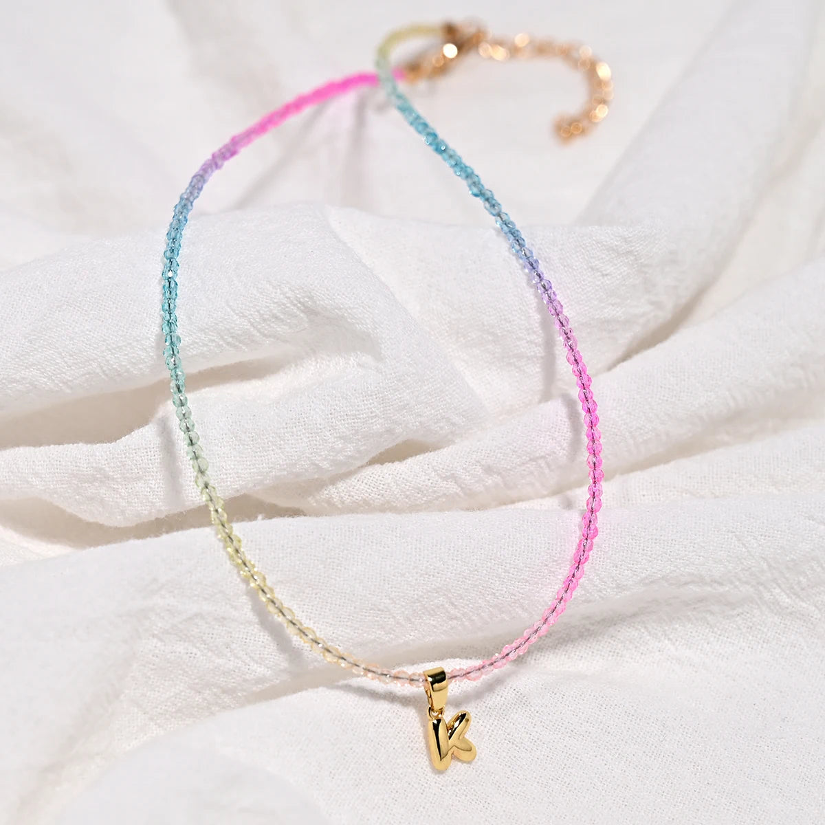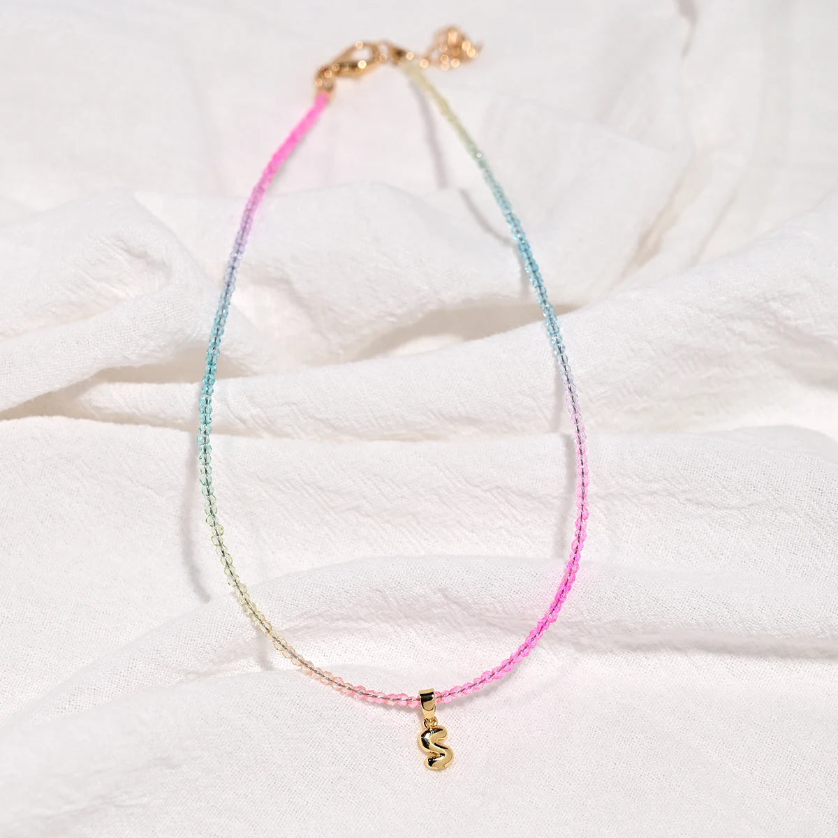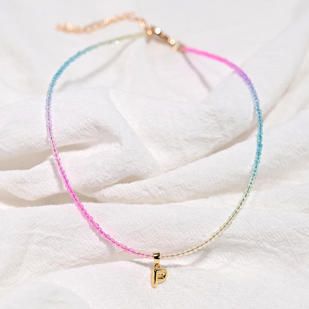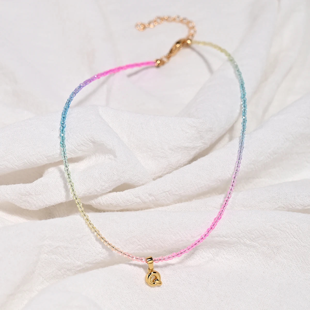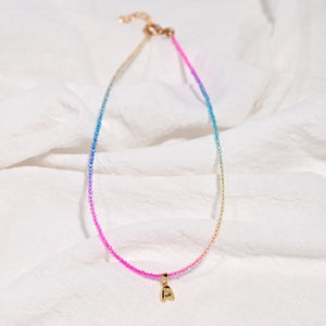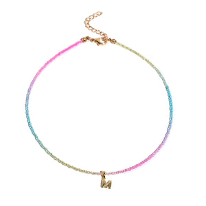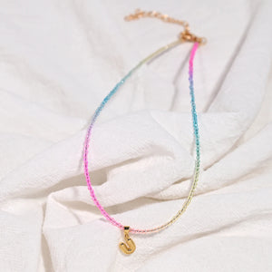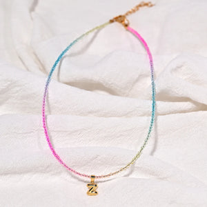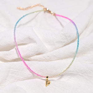 Crystal Beaded Choker Initial Necklace