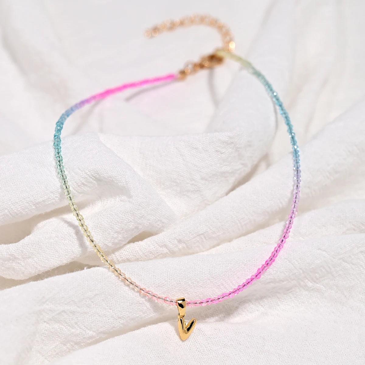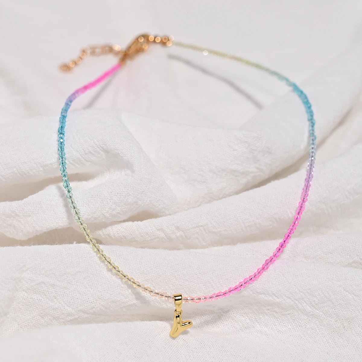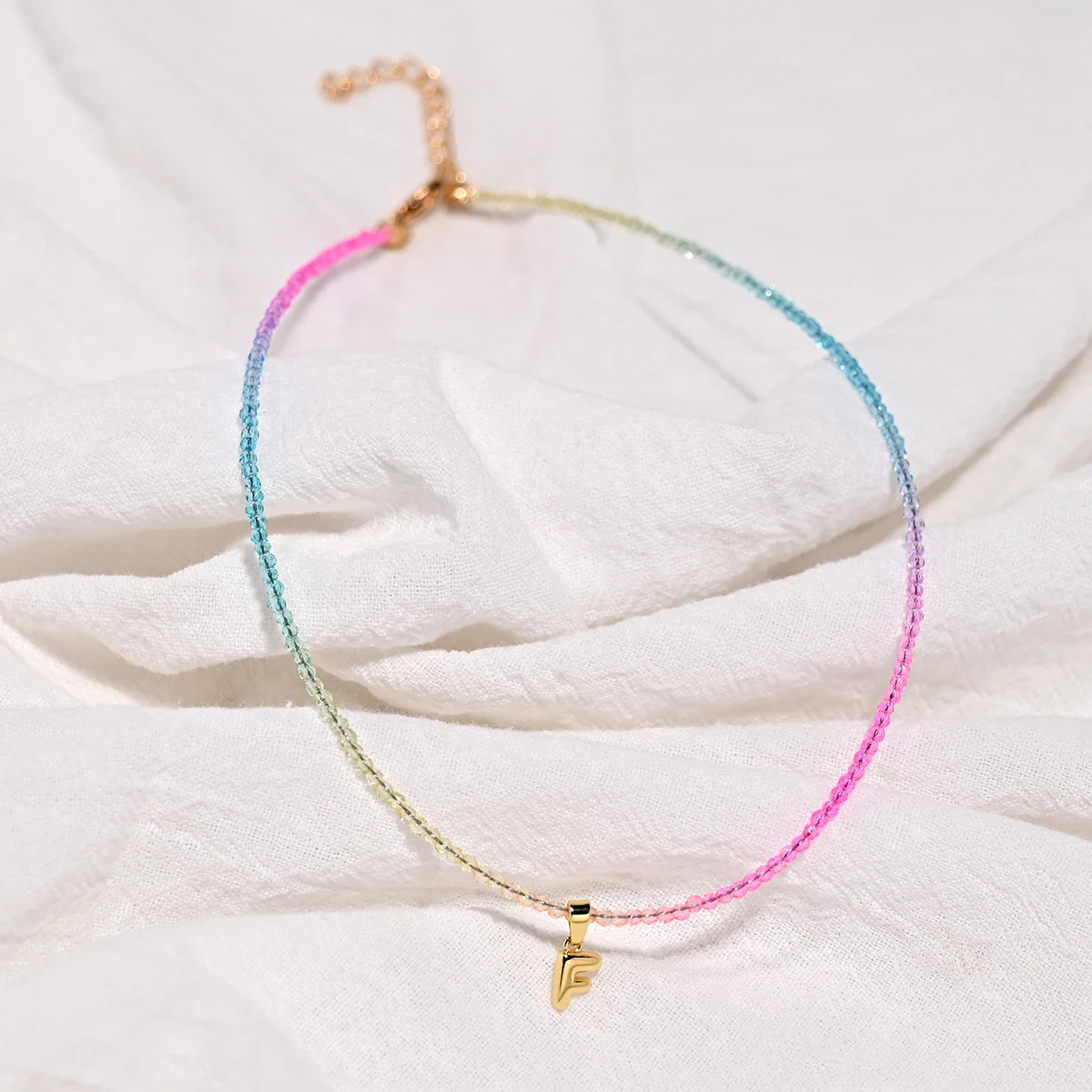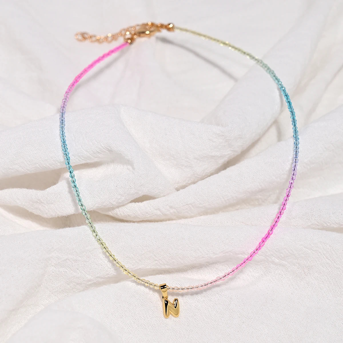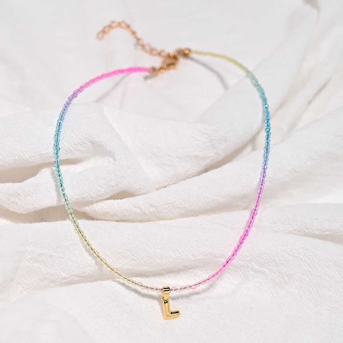 Crystal Beaded Choker Initial Necklace