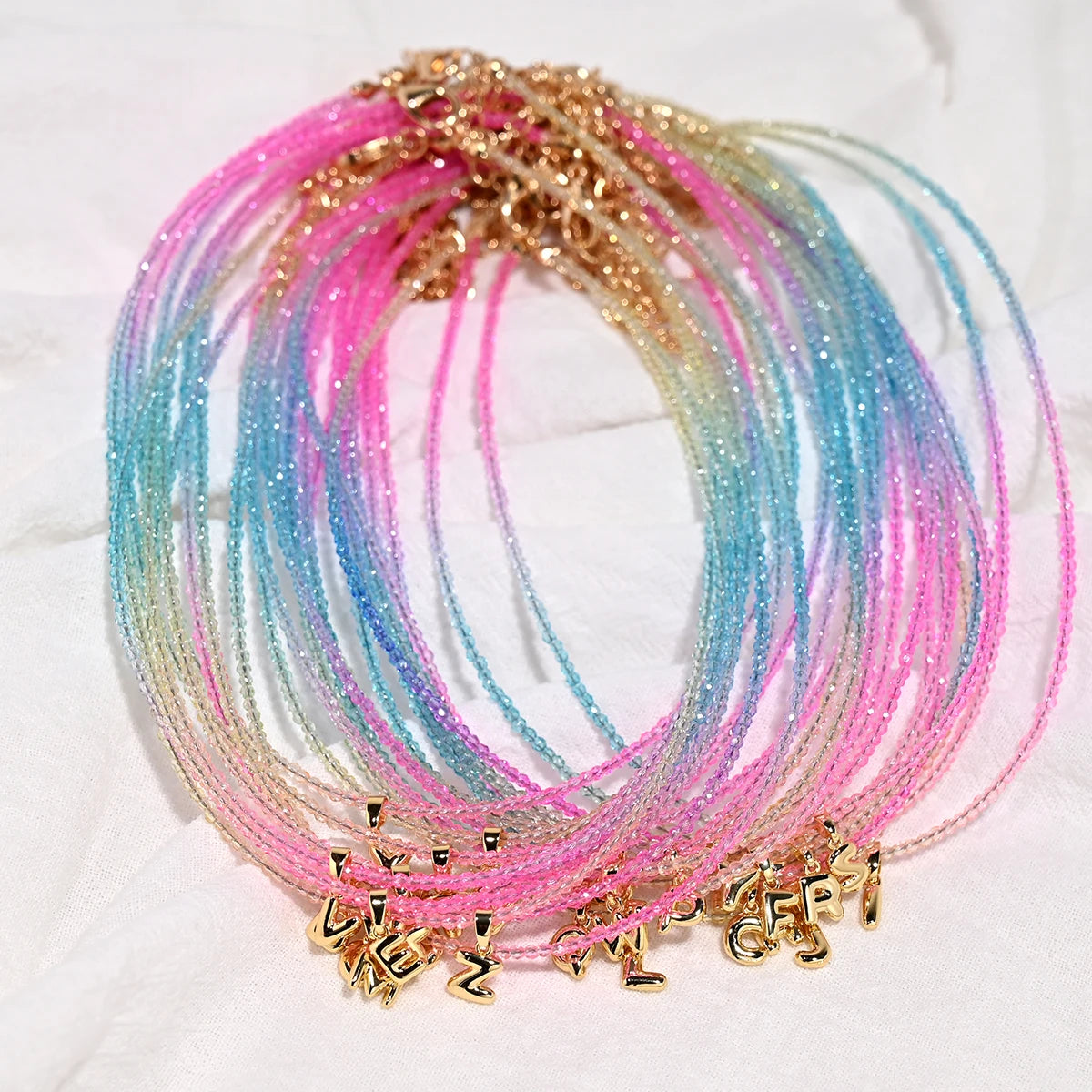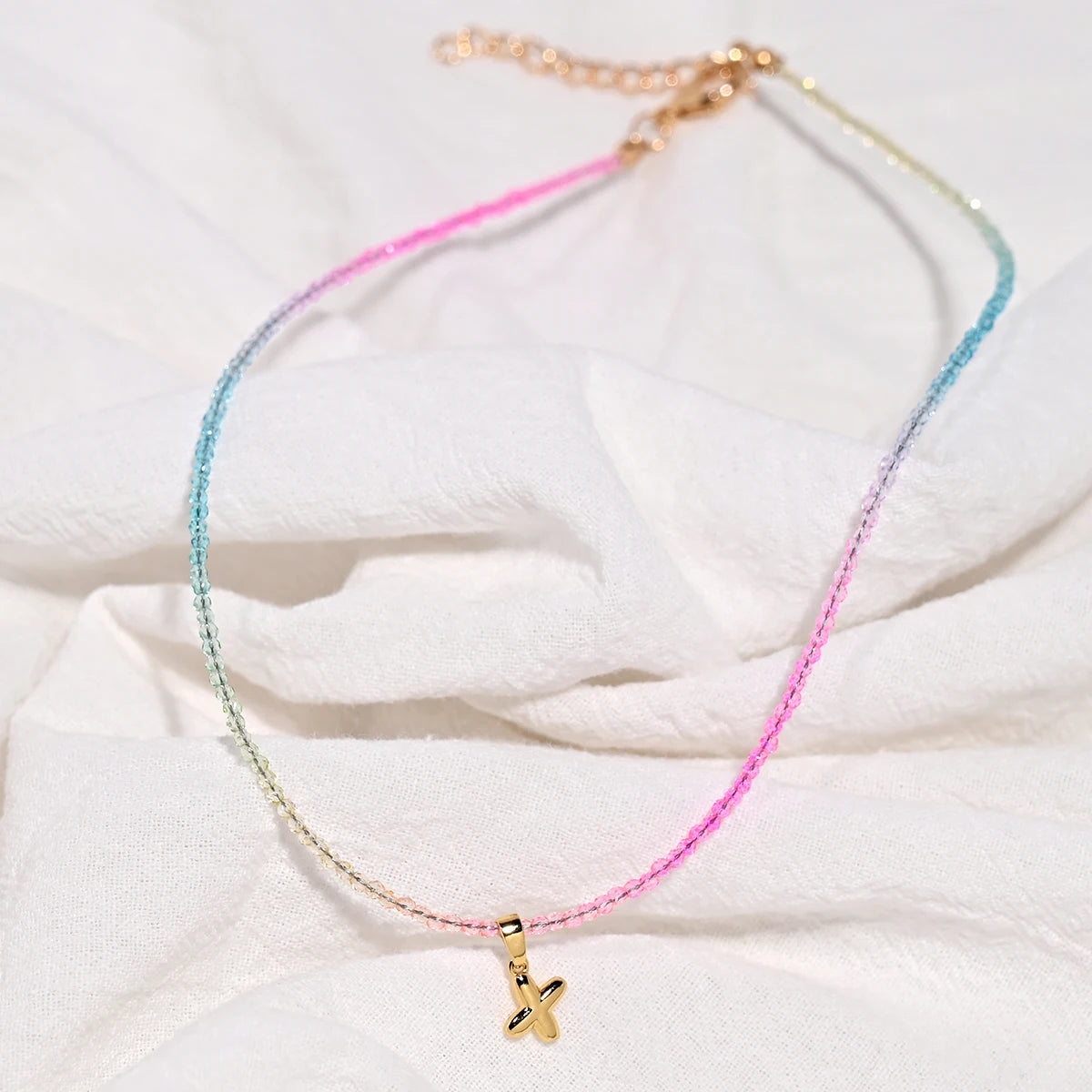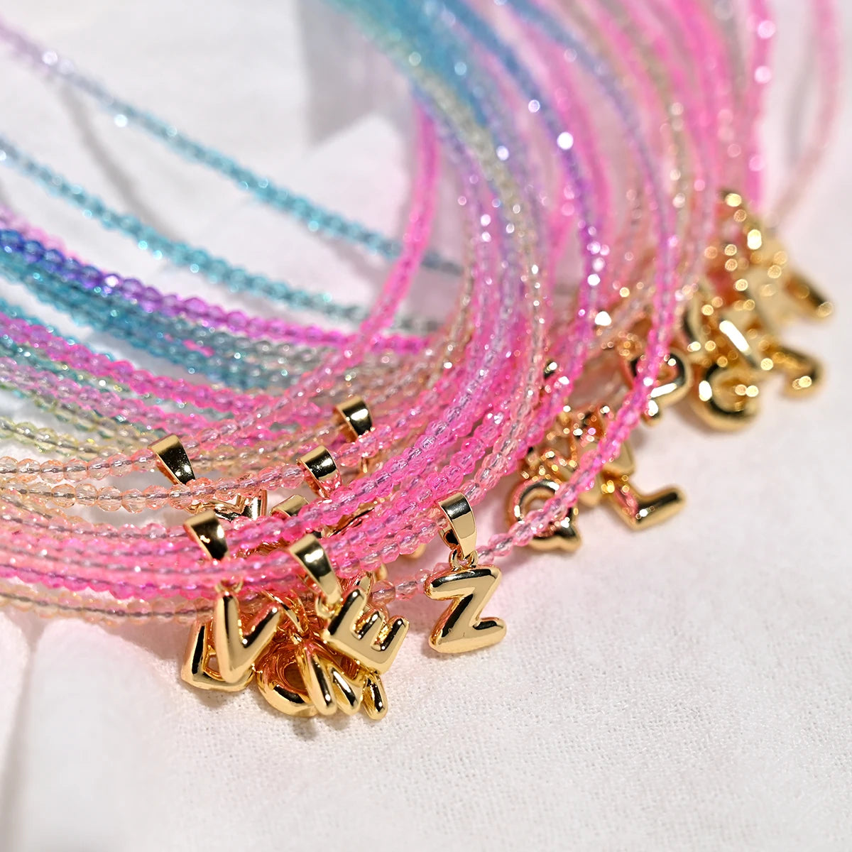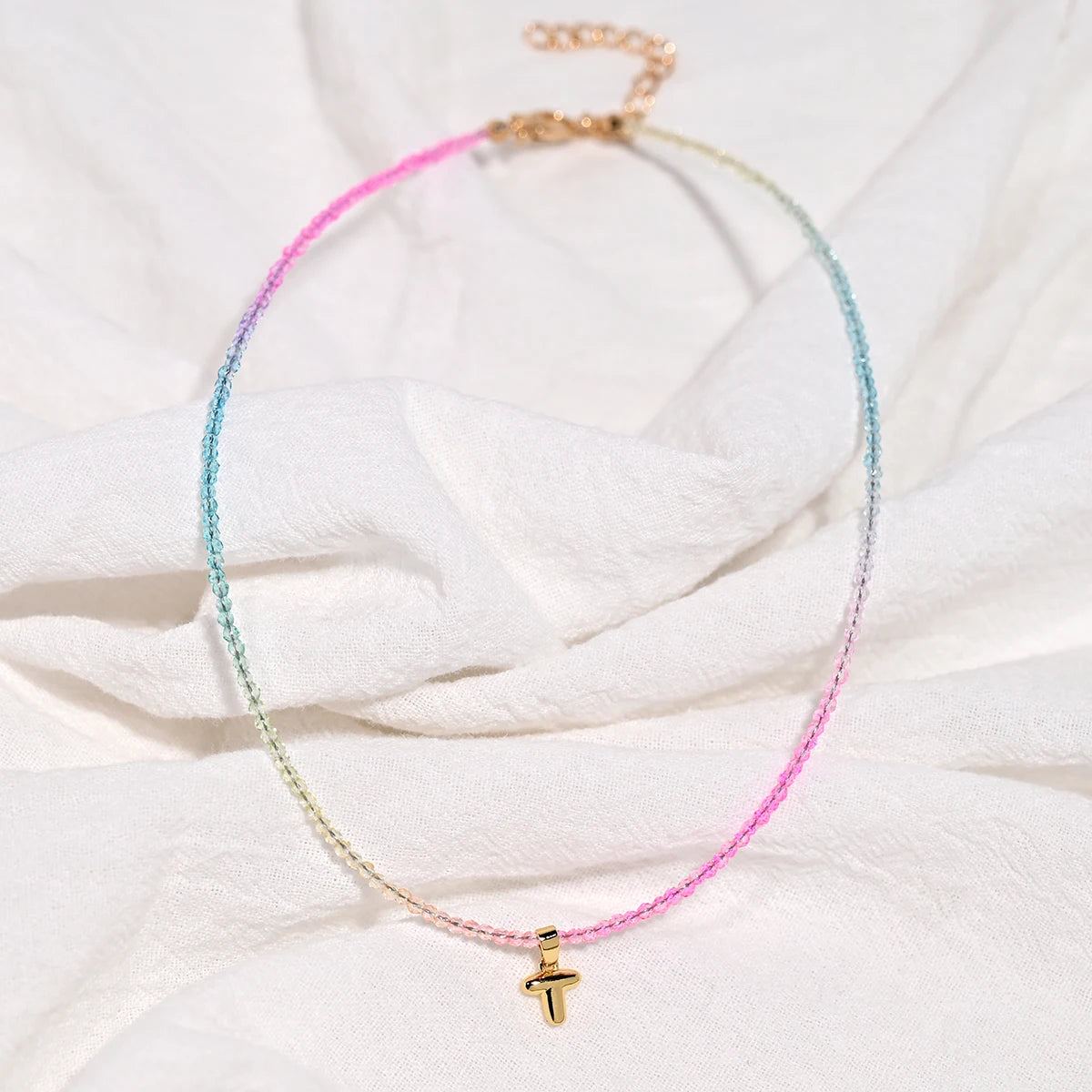 Crystal Beaded Choker Initial Necklace
