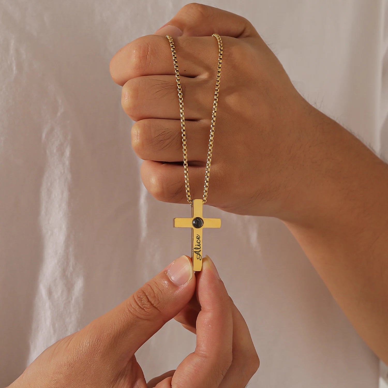 A heartfelt and meaningful gift, this engraved cross necklace with a photo projection is the perfect way to celebrate love, faith, and cherished moments with those who matter most.