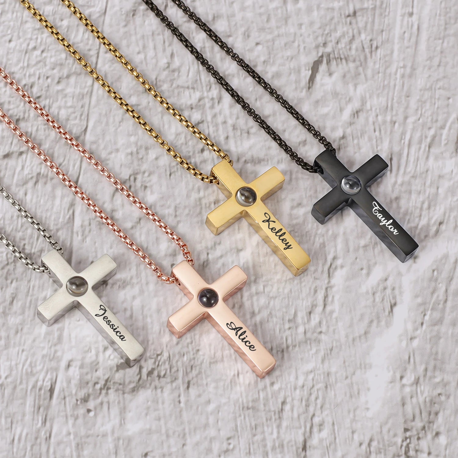 A heartfelt and meaningful gift, this engraved cross necklace with a photo projection is the perfect way to celebrate love, faith, and cherished moments with those who matter most.