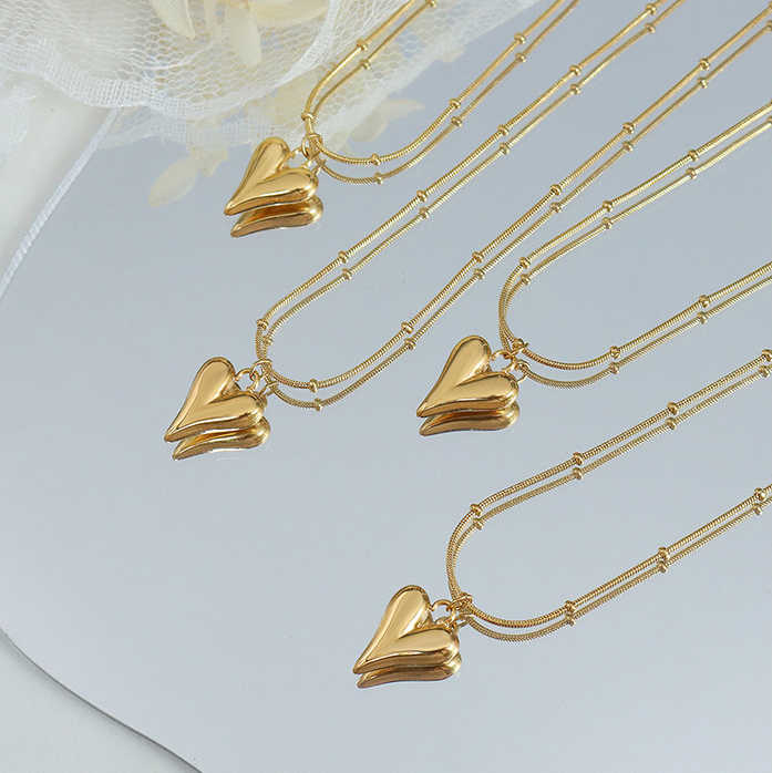 Heart Necklace with Snake Chain Gold