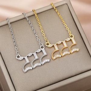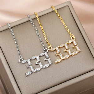Shine with meaning and style in this Icy Angel Number Necklace Silver. The sparkling cubic zirconia angel number pendant catches the light beautifully, while the silver finish adds a touch of everyday elegance. Whether you choose 111 for new beginnings or 888 for abundance, this silver angel number necklace lets you wear your personal message close to your heart.