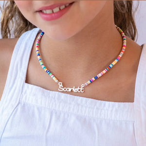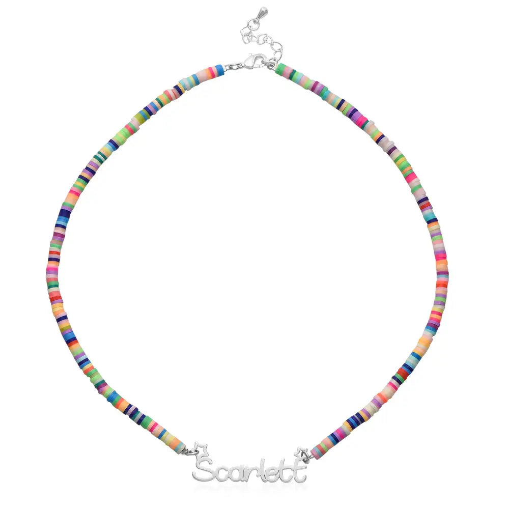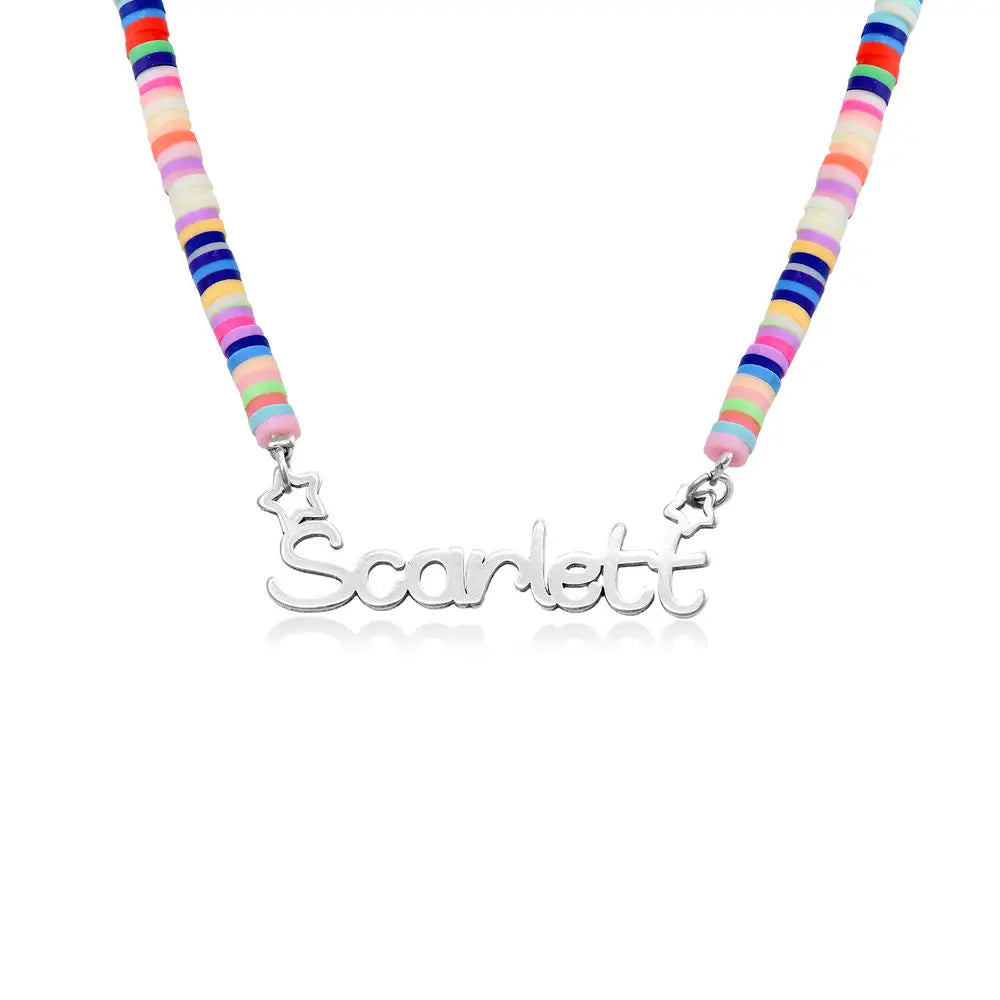 Bright, fun, and full of personality — this Kids Name Necklace Rainbow Beads is the perfect way to add a personal touch to any outfit. The colorful beaded chain brings playful charm, while your custom name, framed by delicate star accents, adds a special meaning. Available for both kids and adults, this beaded name necklace is a joyful keepsake made to last.