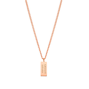 A bold and meaningful accessory, the Minimalist Engraved Bar Pendant Necklace in Rose Gold is the perfect way to showcase your individuality. Fully customizable, this necklace allows you to engrave names, initials, dates, or meaningful words, making it a one-of-a-kind piece that reflects your personal style. Crafted from high-quality stainless steel, this necklace is built for durability, with a tarnish-resistant finish that maintains its shine over time. The hypoallergenic material ensures comfort for all-day wear, making it safe for sensitive skin. Featuring a sleek and modern bar pendant, this necklace pairs effortlessly with any outfit, whether casual or formal. Designed exclusively for men, its timeless appeal makes it a standout addition to any jewelry collection.