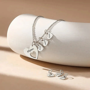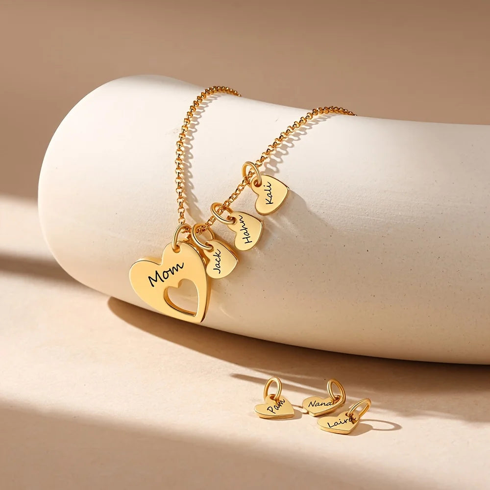 Celebrate the unbreakable bond between a mother and her children with this meaningful heart pendant necklace. The larger heart carries the name of the loving caregiver, while the smaller hearts can be engraved with each child’s name or a special date. A heartfelt piece that keeps loved ones close, wherever life takes you.