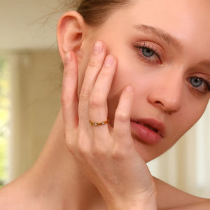 Shimmering stars meet a softly rippled design in this gold ring, creating a piece that feels both playful and refined. The subtle wave texture catches the light beautifully, while sparkling cubic zirconia stars add a dreamy touch. Perfect for stacking or wearing solo, this ring is your everyday little luxury—effortless, timeless, and always in style.