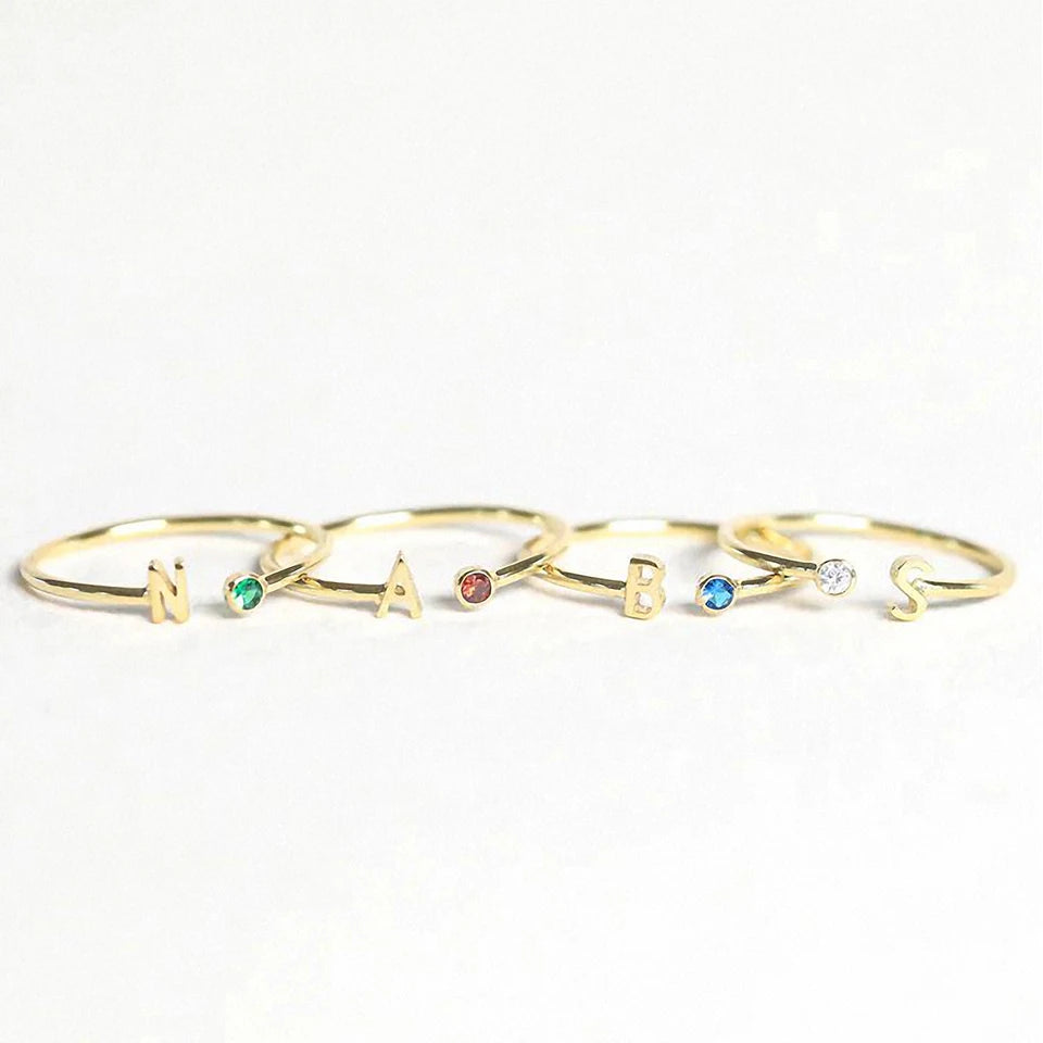 Add a touch of sparkle and meaning to your everyday look with this silver birthstone ring with initial. The sleek silver finish pairs beautifully with the personalized touch of your chosen initial and the dazzling birthstone, creating a piece that's as unique as you are. Whether it's a gift for someone special or a treat for yourself, this ring blends timeless charm with modern style.