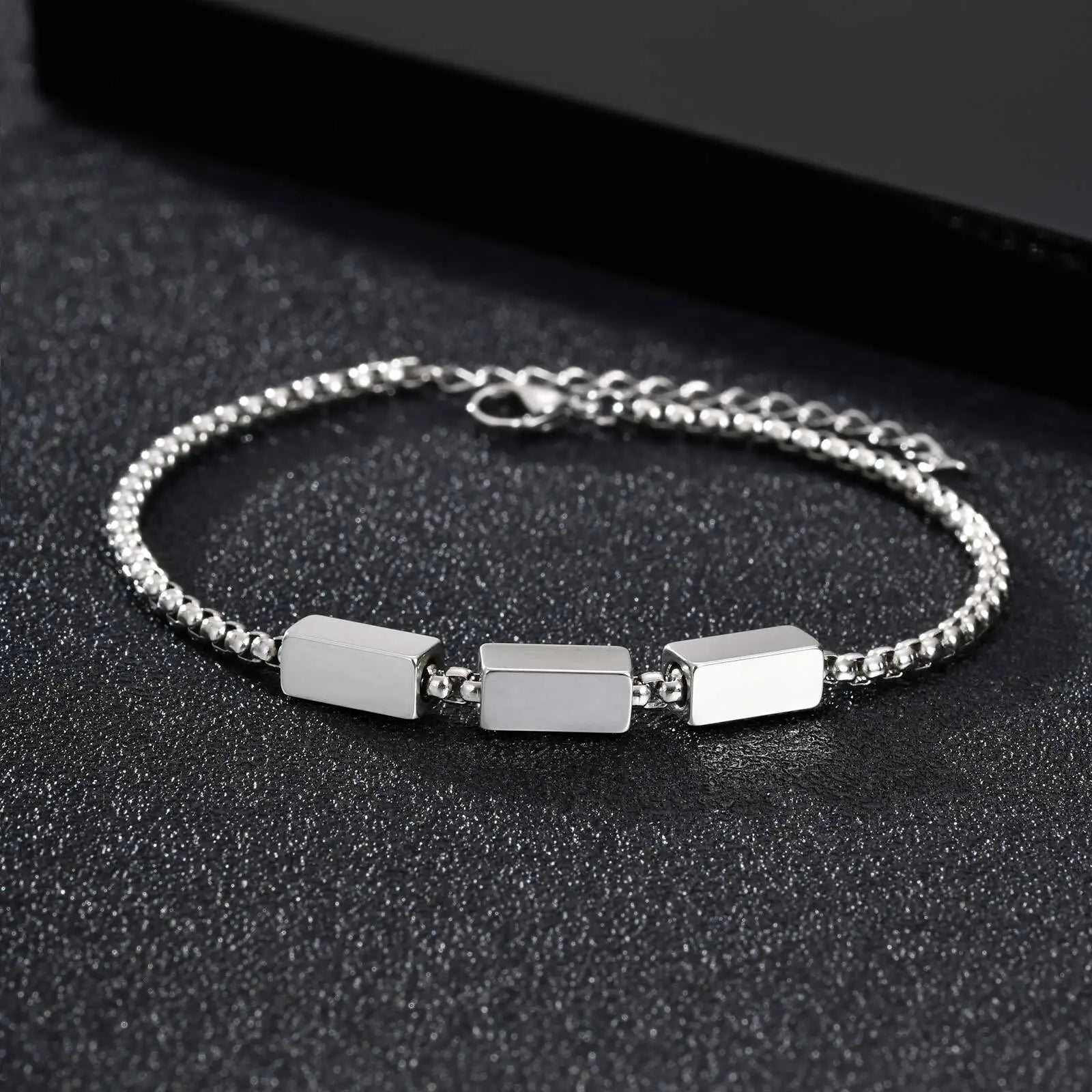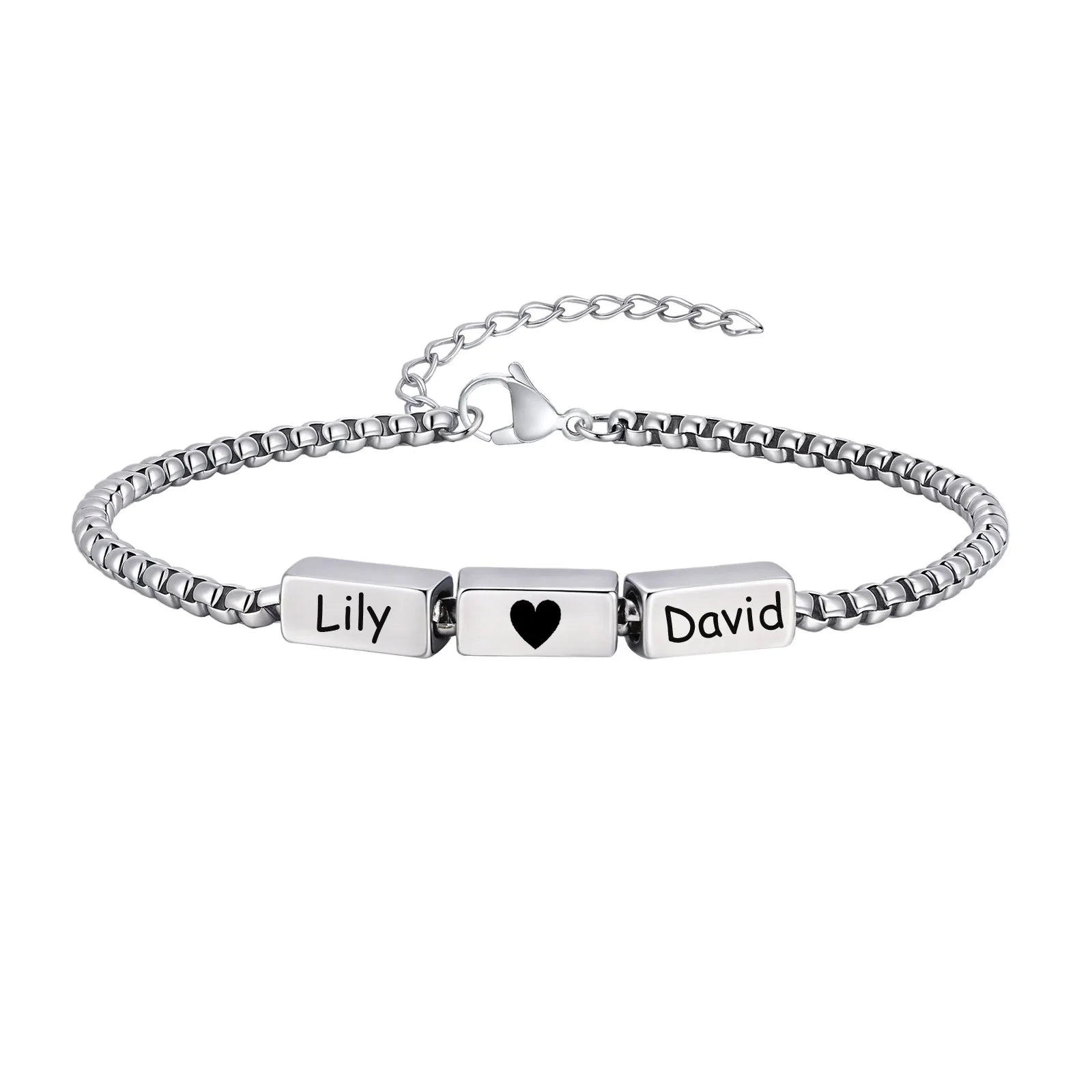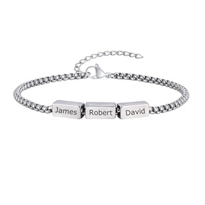 Silver Box Chain Name Bracelet with Custom Engraving