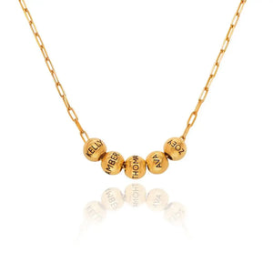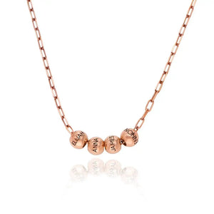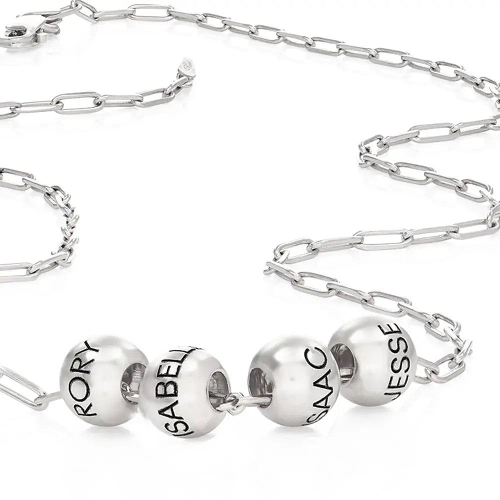 Silver Paperclip Family Necklace with Name Beads