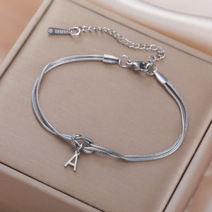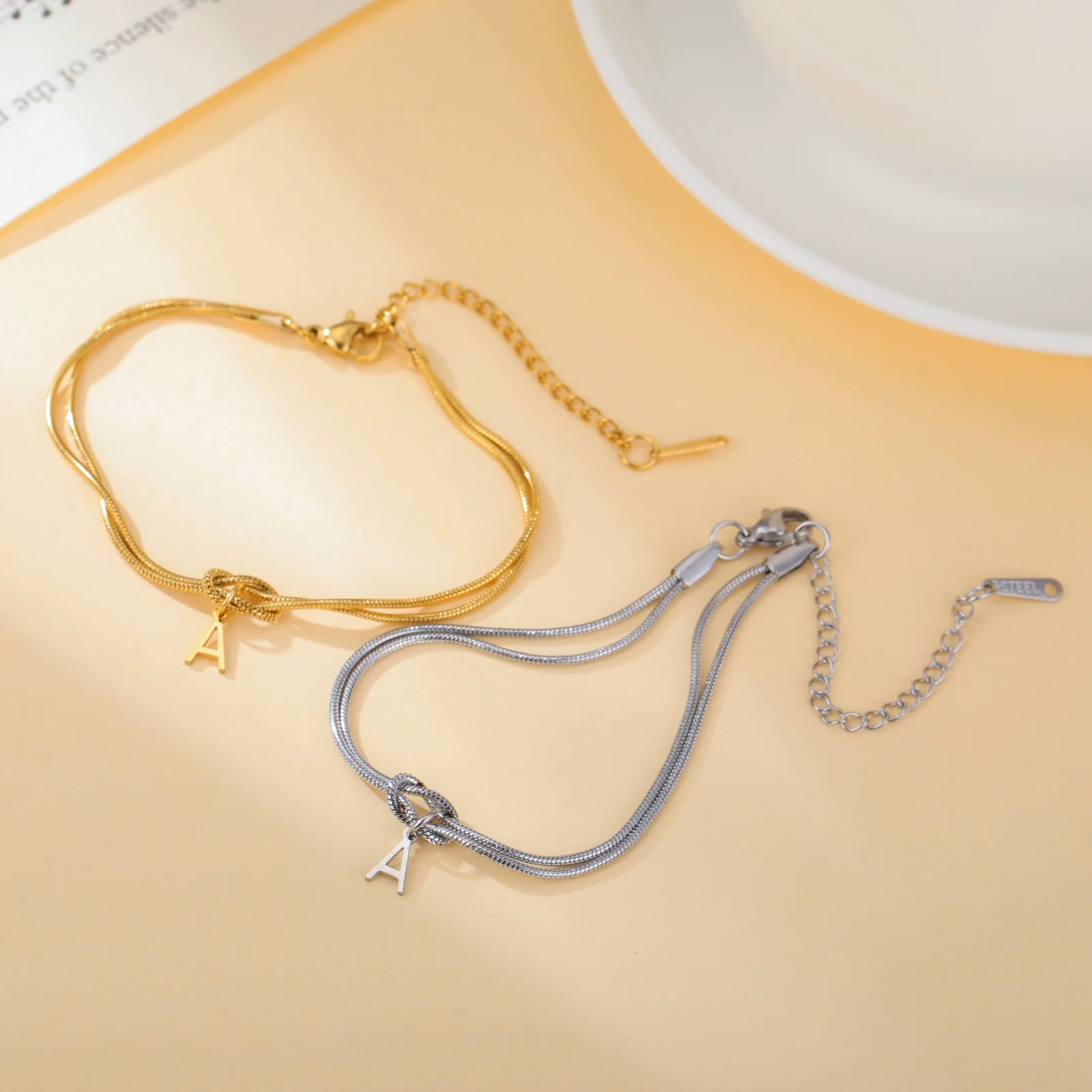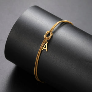 Silver Snake Chain Initial Bracelet with Infinity Knot