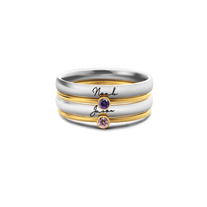 Tiny names, big meaning. The Stackable Birthstone Engraved Name Ring lets you carry love on your fingers—layered with names, birthstones, and beautiful memories. Whether it’s for your children, soulmate, or a word that keeps you grounded, each ring adds a little sparkle to your everyday. Simple, stylish, and full of heart—this is your kind of luxury.