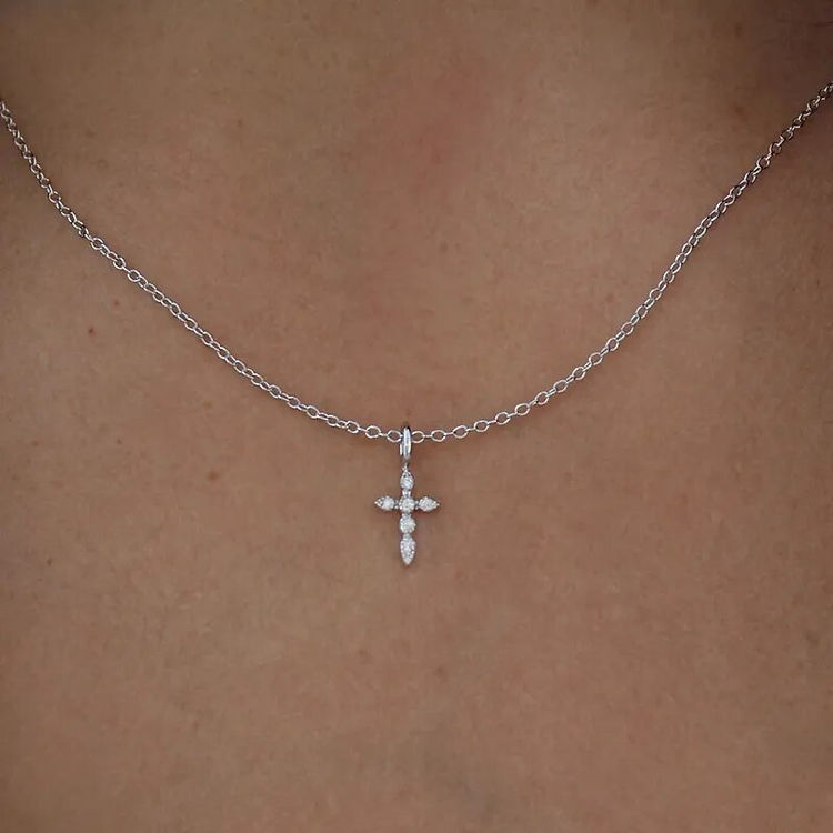 Delicate, timeless, and full of meaning — this Tiny Sparkling Cross Pendant Necklace Gold is a beautiful way to express your style and faith. The fine link chain holds a dainty gold cross pendant adorned with shimmering cubic zirconia, giving it a subtle yet eye-catching sparkle. Perfect for everyday wear or as a thoughtful gift, this gold cross necklace adds a touch of elegance to any look.