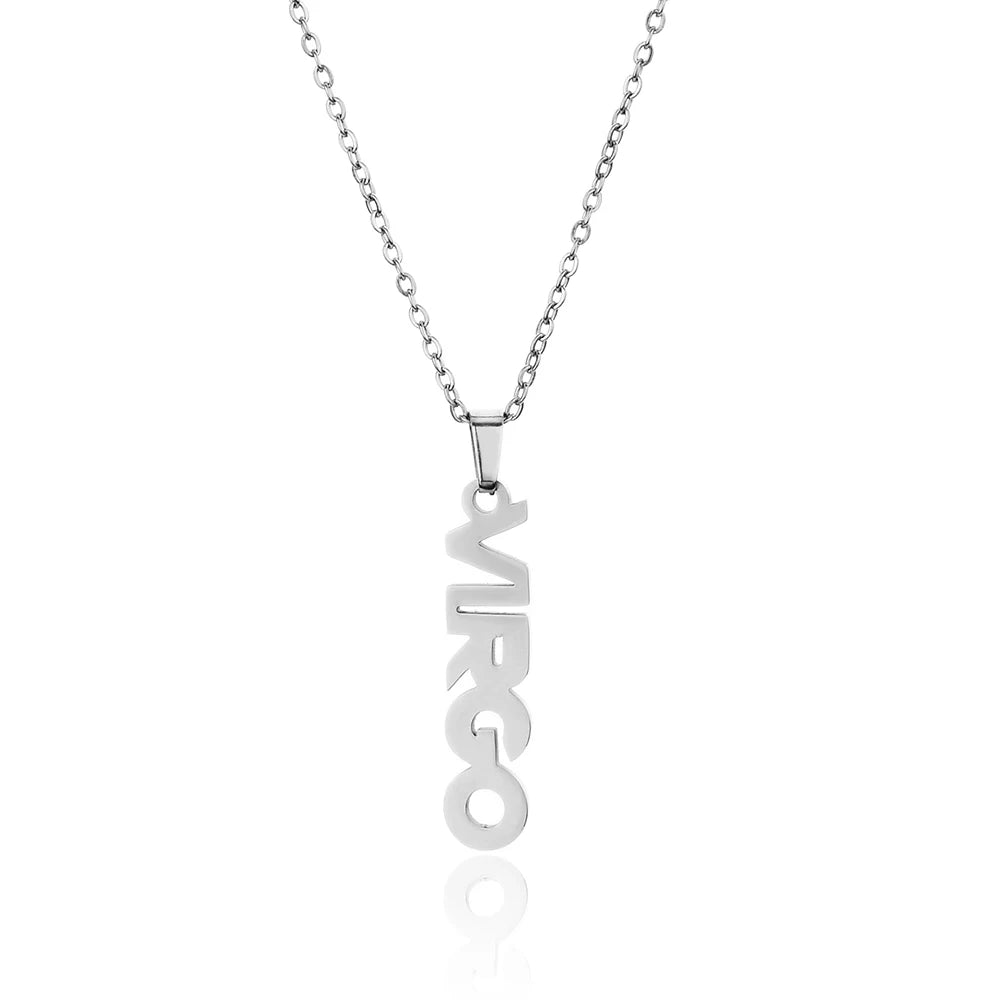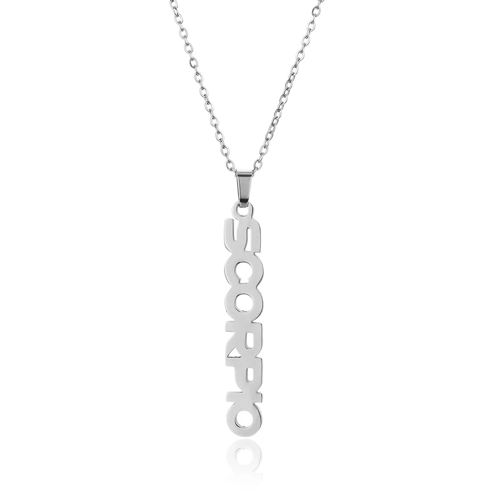 Zodiac Sign Necklace Text Silver